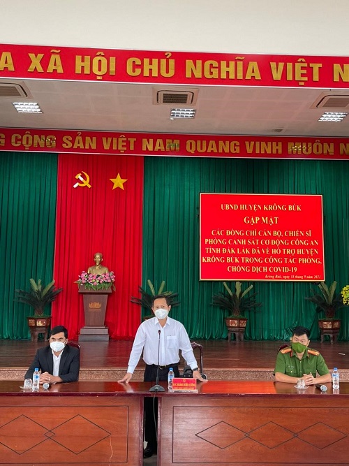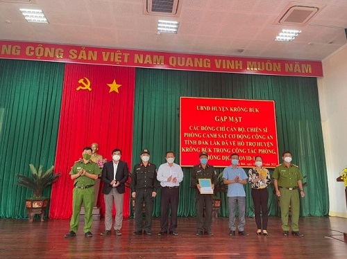 Ngày 18/9, UBND huyện Krông Búk đã tổ chức gặp mặt cán bộ, chiến sĩ thuộc Phòng Cảnh sát cơ động Công an tỉnh đang thực hiện nhiệm vụ tăng cường hỗ trợ huyện Krông Búk phòng, chống dịch bệnh Covid-19.