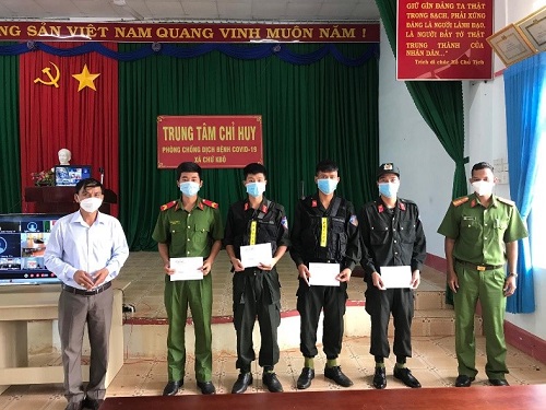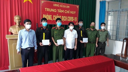 Đại diện các xã trên đìa bàn huyện Krông Búk củng đã đến trực tiếp các chốt nơi cán bộ, chiến sĩ Phòng Cảnh sát cơ động thực hiện nhiệm vụ để cảm ơn và tặng quà.