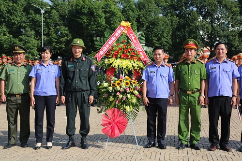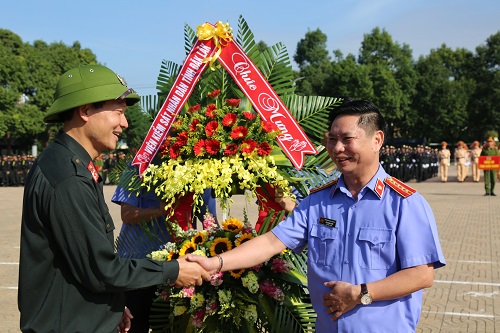 Đại diện lãnh đạo Viện kiểm sát nhân dân tỉnh tặng hoa chúc mừng Công an tỉnh nhân ngày truyền thống CAND