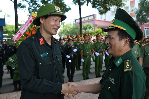 Bộ đội Biên phòng tỉnh tặng hoa chúc mừng Công an tỉnh nhân ngày truyền thống CAND