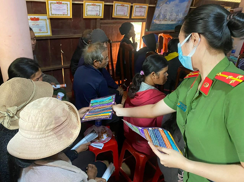 Công an xã Cư Êbur tuyên truyền, phát tờ rơi cho bà con Nhân dân