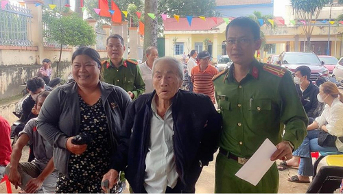 Công an xã Cư Êbur kết hợp phát động phong trào toàn dân bảo vệ ANTQ và tặng quà cho các gia đình có hoàn cảnh khó khăn