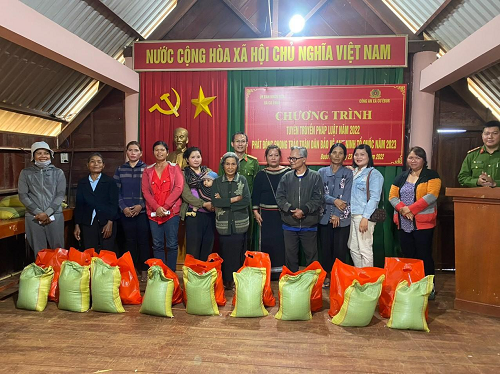 Tính riêng trong năm 2022, Công an xã đã phối hợp Mặt trận, các đoàn thể, tổ chức chính trị xã hội tổ chức 84 buổi tuyên truyền pháp luật và phát động phong trào toàn dân tham gia BVANTQ cho 7.000 lượt người tham gia. Qua đó, cung cấp thông tin về tình hình các loại tội phạm, phương thức, thủ đoạn của các loại tội phạm liên quan đến ANCT lợi dụng tín ngưỡng, tôn giáo, dân tộc ở khu vực vùng đồng bào dân tộc thiểu số; công tác phòng, chống cháy, nổ, thu hồi vũ khí, vật liệu nổ; bài trừ tệ nạn xã hội; cảm hóa, giáo dục, giúp đỡ người lầm lỗi tại gia đình và cộng đồng dân cư; giữ gìn trật tự công cộng; trật tự an toàn, giao thông…