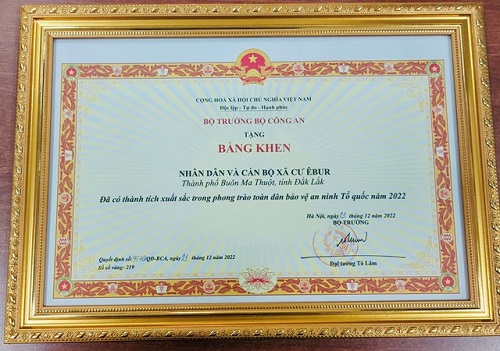 Nhân dân và cán bộ xã Cư Êbur được Bộ trưởng Bộ Công an tặng Bằng khen vì đã có thành tích xuất sắc trong phong trào “Toàn dân bảo vệ an ninh Tổ quốc” năm 2022.