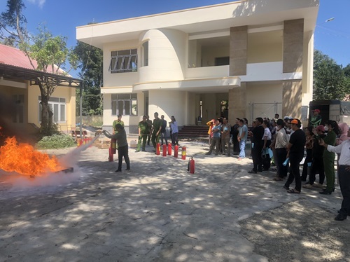 Sau nội dung tập huấn lý thuyết về nghiệp vụ PCCC&CNCH, toàn thể đại biểu đã hướng dẫn sử dụng các thiết bị và kỹ năng xử lý tình huống đảm bảo an toàn PCCC khi có sự cố xảy ra.