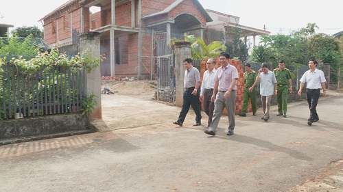 Chính quyền địa phương cùng lực lượng Công an xã Hòa Hiệp đi thăm, động viên người dân Thôn Kim Phát