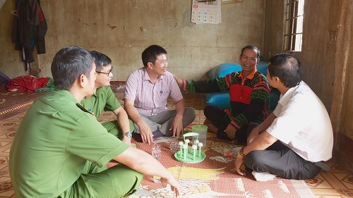 Chính quyền địa phương cùng Công an xã đến thăm động viên những người từng lầm lỡ vươn lên