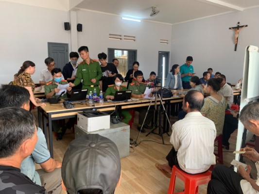 Công an phường Thống Nhất phối hợp Công an thị xã thu nhận hồ sơ cấp CCCD, tài khoản ĐDĐT tại giáo xứ Vinh Đức