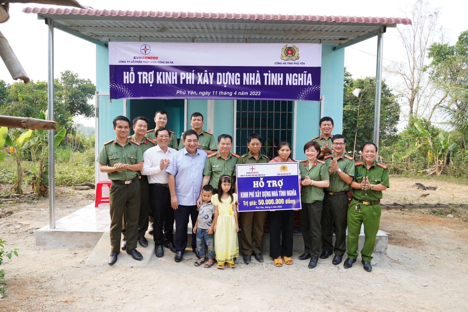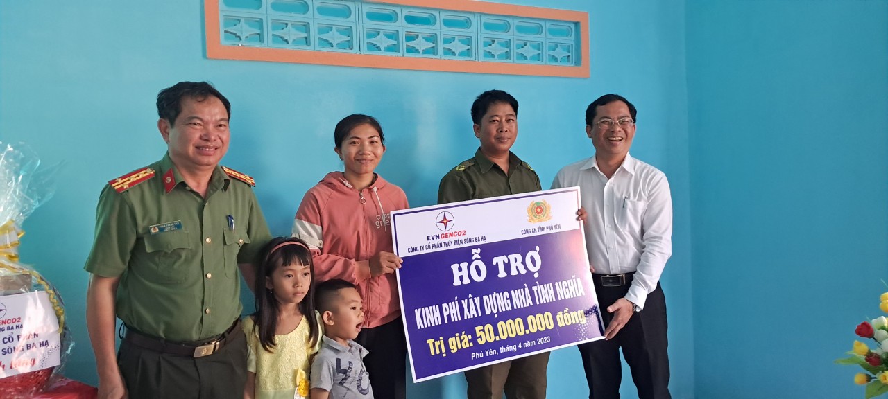 Từ nguồn kinh phí do CBCS tự nguyện đóng góp và vận động Công ty Cổ phần thủy điện sông Ba Hạ, thêm một ngôi nhà tình nghĩa nữa vừa được Công an Phú Yên phối hợp xây tặng và bàn giao.