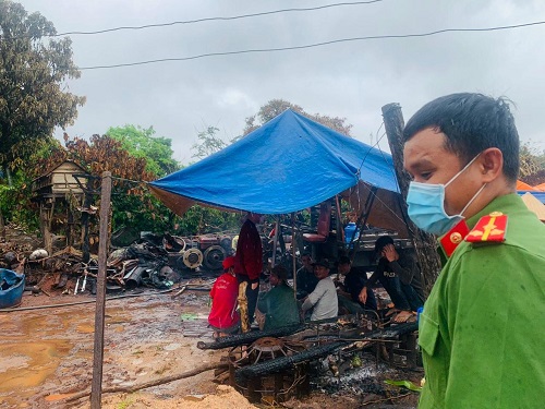 Chia sẽ với đoàn công tác, ông Ksơr Y Gũi nghẹn ngào cho biết, ngày 28/03/2022, cả nhà ông đi làm rẫy từ sáng sớm, đến trưa thì nghe tin nhà cháy do bị chập điện, nên vội vàng chạy về, thấy Công an và mọi người đã dập lửa, tài sản nửa đời người gom góp chỉ còn lại đống tro tàn.