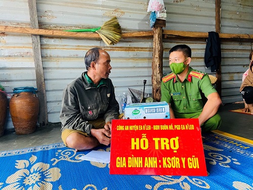 Chia sẻ với những khó khăn, mất mát của gia đình, Đảng ủy, lãnh đạo Công an huyện và các nhà hảo tâm đã thăm hỏi, động viên và gửi tặng gia đình một khoản tiền và nhu yếu phẩm để hỗ trợ gia đình. Đây là tình cảm của cán bộ chiến sỹ Công an huyện Ea H’leo và Ngân hàng BIDV - Phòng giao dịch tại Ea H’leo mong gia đình vượt qua khó khăn.
