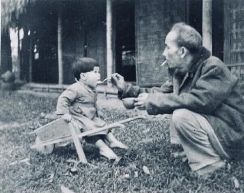 Ảnh gốc: Chủ tịch Hồ Chí Minh cho em bé ăn tại chiến khu Việt Bắc năm 1951