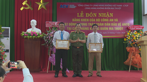 Chiều 23/5/2020, Cảng hàng không Buôn Ma Thuột đã phối hợp với Công an tỉnh Đắk Lắk tổ chức Lễ đón nhận Bằng khen của Bộ Công an và phát động phong trào toàn dân bảo vệ an ninh Tổ quốc. Đồng chí Đại tá Lê Văn Tuyến - Ủy viên Ban Thường vụ Tỉnh ủy, Bí thư Đảng ủy, Giám đốc Công an tỉnh Đắk Lắk đã đến dự Lễ.