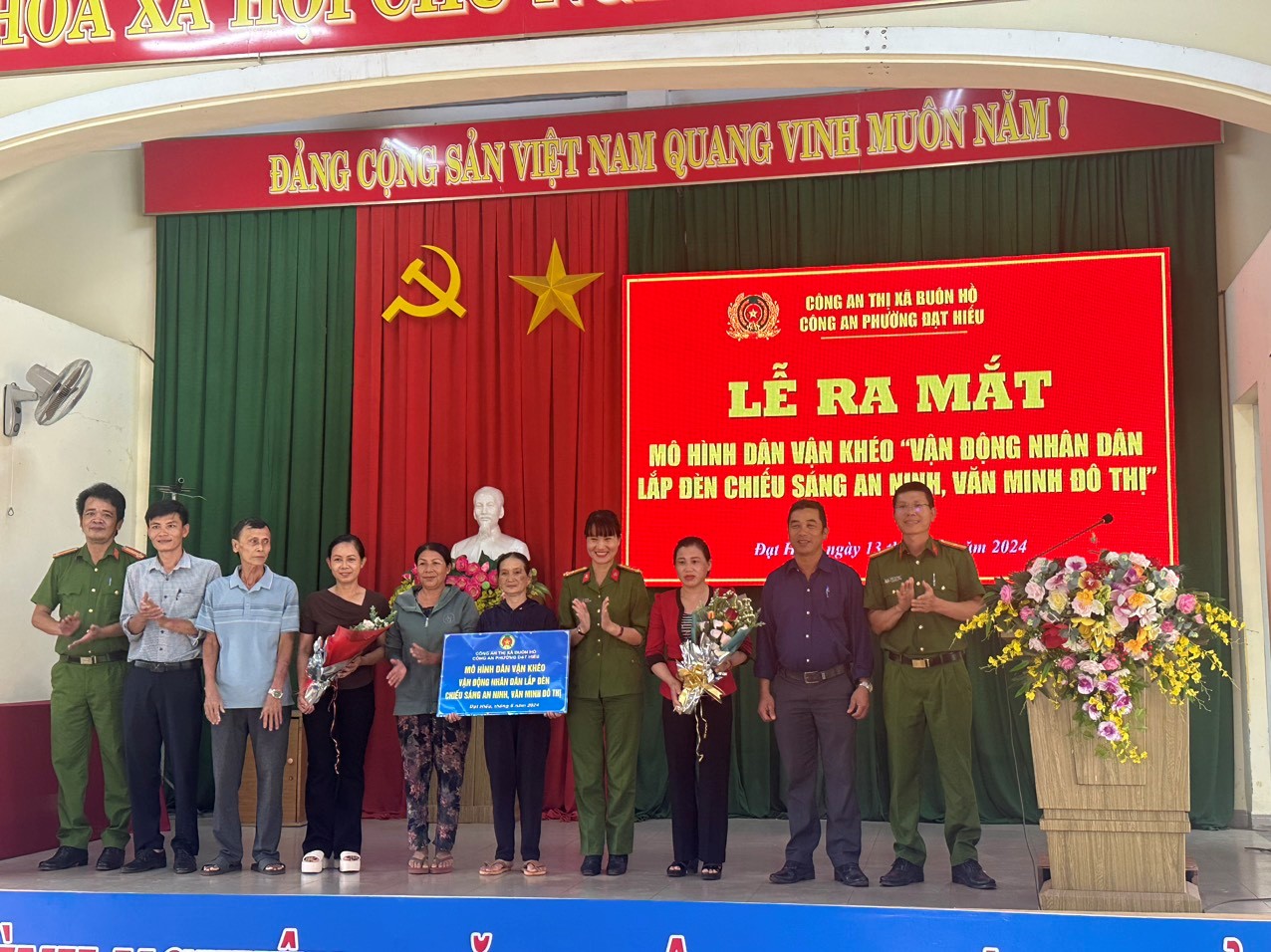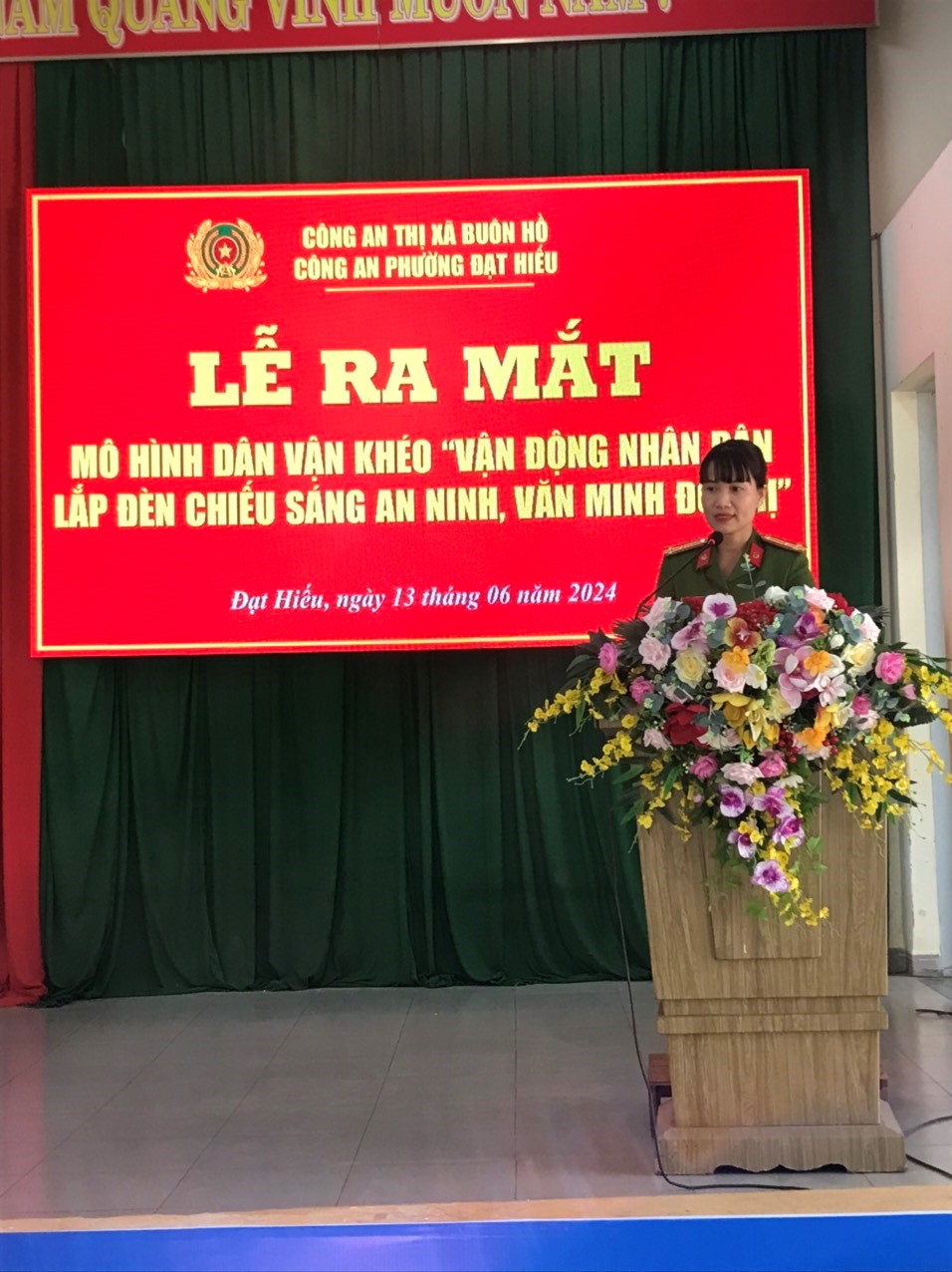 Nhận thức được ý nghĩa và tầm quan trọng của mô hình Dân vận khéo, ngày 13/6/2024, sau quá trình vận động, chuẩn bị các điều kiện cần thiết, Công an phường Đạt Hiếu đã tổ chức Lễ ra mắt mô hình Dân vận khéo “Vận động nhân dân lắp đèn chiếu sáng an ninh, văn minh đô thị” tại đường Hoàng Việt, TDP1, phường Đạt Hiếu.