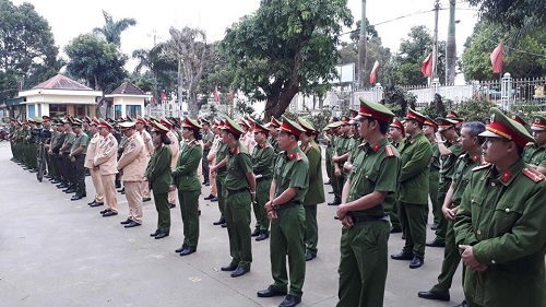 Cán bộ chiến sĩ Công an thị xã Buôn Hồ tại buổi Lễ ra quân