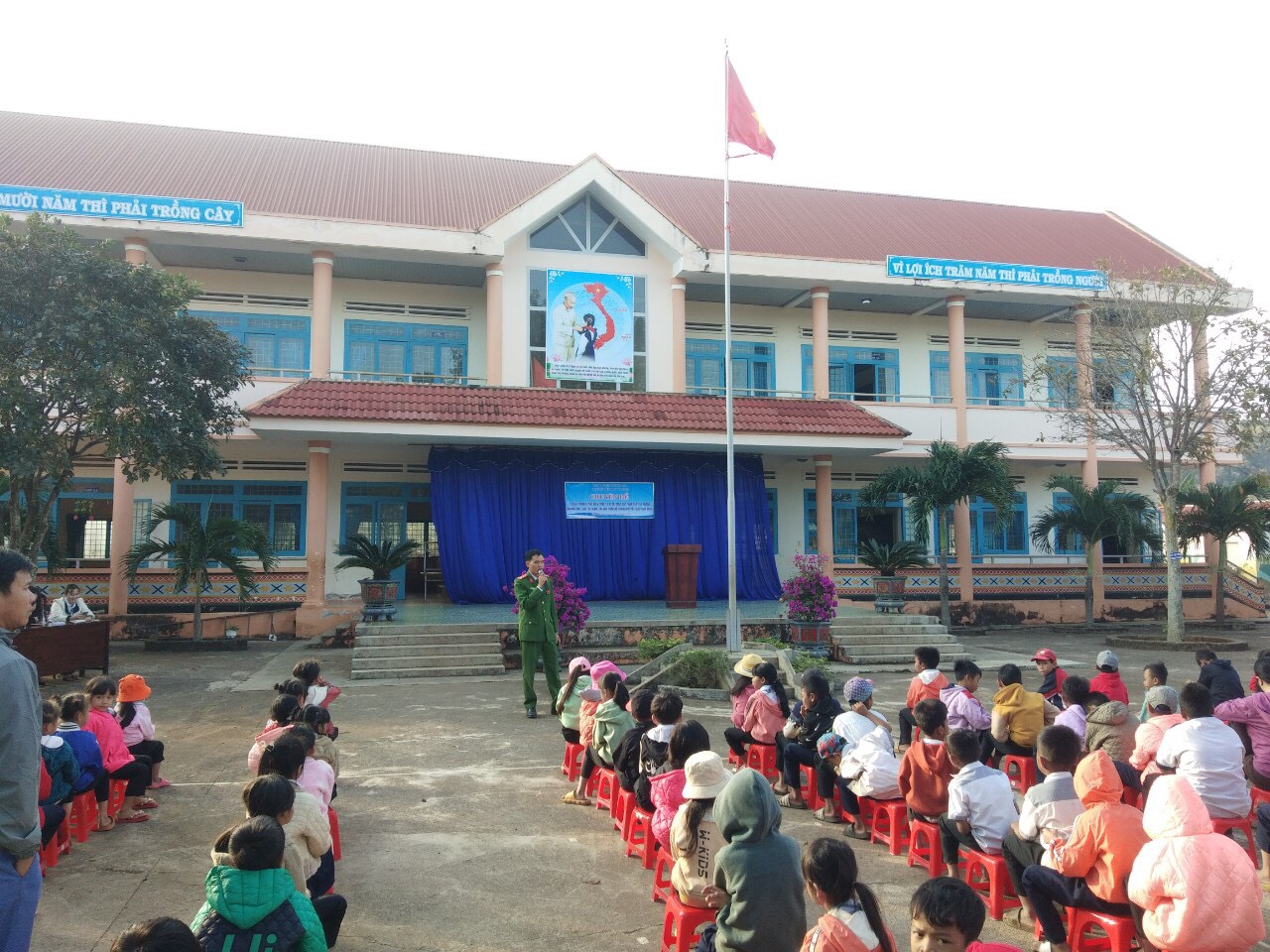 (Chỉ huy Công an xã tuyên truyền tại Trường Tiểu học Y Ngông)