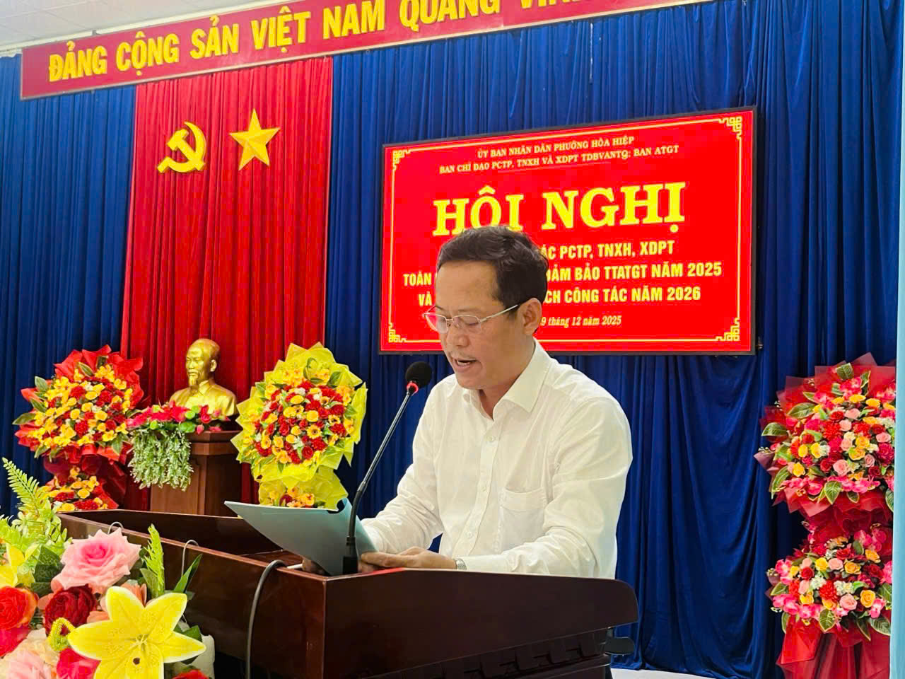 Chiều ngày 29/12/2025, Công an phường Hòa Hiệp đã tham mưu UBND phường tổ chức Hội nghị tổng kết công tác phòng, chống tội phạm, tệ nạn xã hội; xây dựng phong trào toàn dân bảo vệ an ninh Tổ quốc và công tác bảo đảm trật tự, an toàn giao thông năm 2025. Hội nghị được tổ chức nhằm đánh giá toàn diện kết quả thực hiện các mặt công tác trong năm qua, đồng thời đề ra phương hướng, nhiệm vụ trọng tâm trong thời gian tới.
