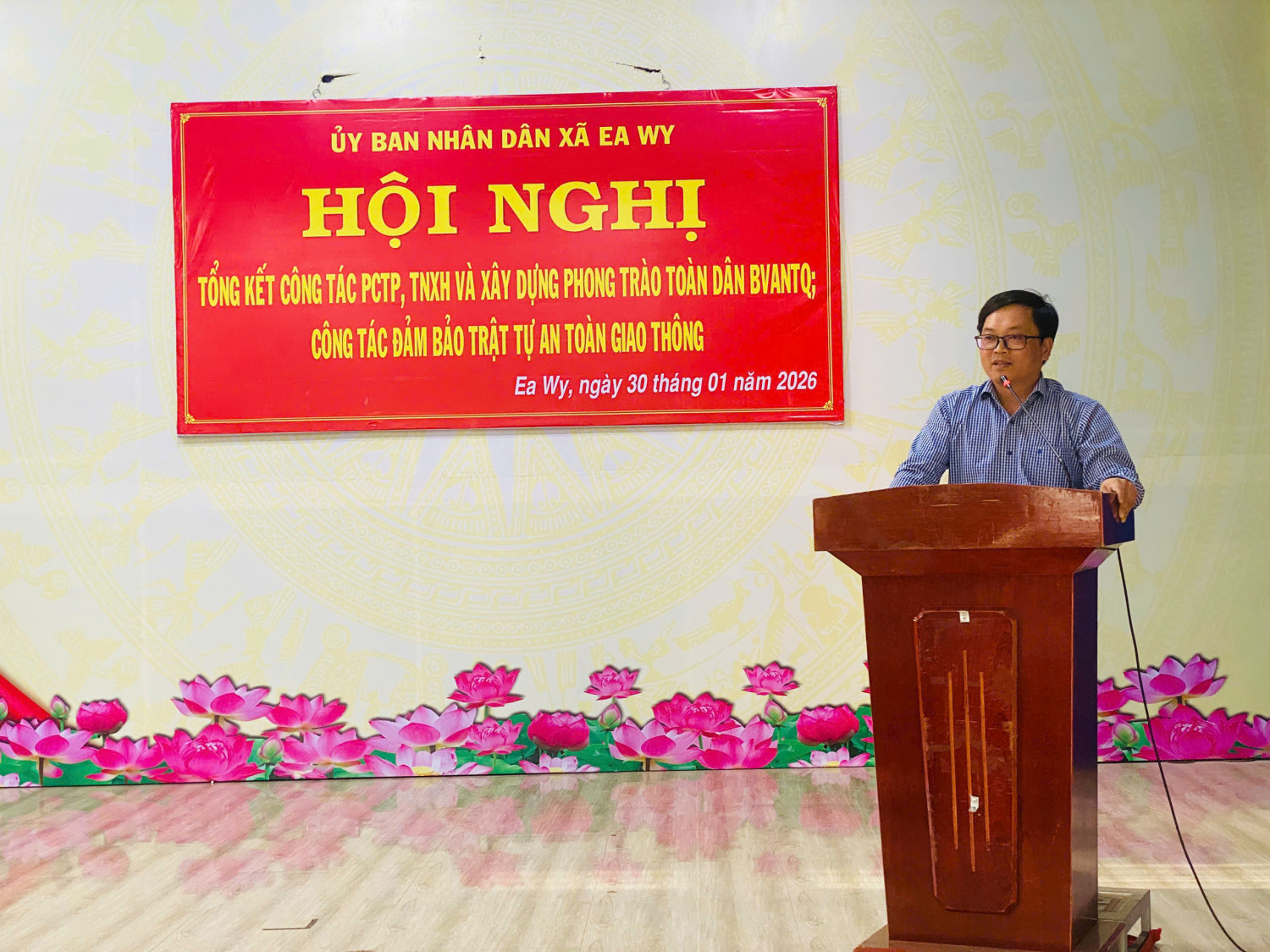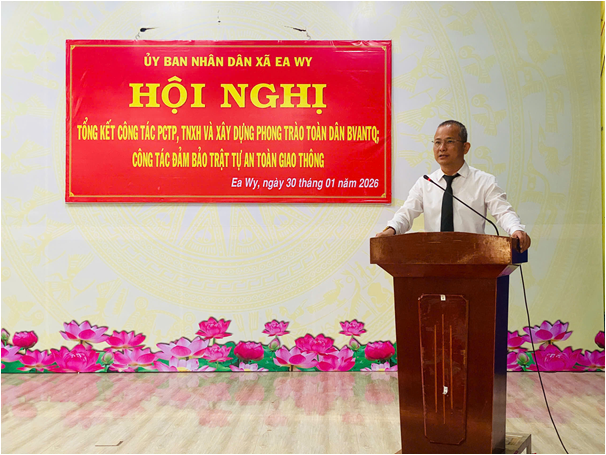 Chiều ngày 30/01/2026, tại Hội trường Nhà Văn hóa xã Ea Wy, Ban Chỉ đạo phòng, chống tội phạm, tệ nạn xã hội và xây dựng phong trào toàn dân bảo vệ an ninh Tổ quốc (ANTQ) xã Ea Wy đã tổ chức Hội nghị tổng kết công tác xây dựng phong trào toàn dân bảo vệ ANTQ năm 2025; tổng kết phong trào thi đua đặc biệt trong lực lượng tham gia bảo vệ an ninh, trật tự ở cơ sở và sơ kết 03 năm thực hiện Hướng dẫn số 22 của Bộ Công an giai đoạn 2022–2025.