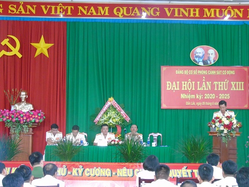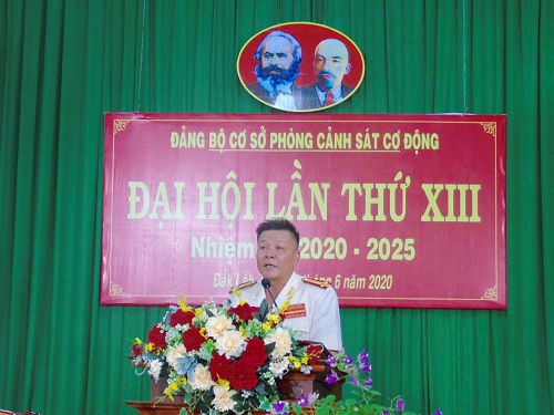 Thay mặt Đảng ủy Công an tỉnh, đồng chí Đại tá Nguyễn Văn Bình - Uỷ viên Ban Thường vụ Đảng ủy, Phó Giám đốc Công an tỉnh đã ghi nhận và biểu dương những thành tích mà Đảng bộ cơ sở Phòng Cảnh sát cơ động đã đạt được trong nhiệm kỳ qua và chỉ đạo một số nội dung công tác trọng tâm nhiệm kỳ 2020 - 2025.