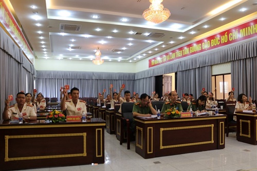 Trên tinh thần đoàn kết, dân chủ, đổi mới, Đại hội đã bầu ra Ban Chấp hành Đảng bộ nhiệm kỳ mới gồm 07 đồng chí; bầu Đoàn đại biểu tham gia dự Đại hội đại biểu Đảng bộ Công an tỉnh lần thứ XIII, nhiệm kỳ 2020 - 2025. Đồng chí Đại tá Nghiêm Thanh Thủy tiếp tục được Đại hội tín nhiệm bầu làm Bí thư Đảng ủy nhiệm kỳ 2020 - 2025.