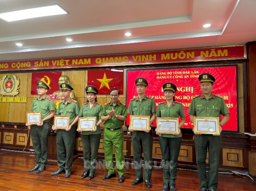 Tại Hội nghị, Đảng uỷ Công an tỉnh đã công bố quyết định tặng Huy hiệu 30 năm tuổi Đảng và quyết định khen thưởng cho tập thể, cá nhân có thành tích xuất sắc trong thực hiện Nghị quyết số 12-NQ/ĐUCA của Đảng uỷ Công an Trung ương, Chỉ thị số 34-CT/TU, ngày 26/5/2023 của Ban Thường vụ Tỉnh ủy và Nghị quyết số 25-NQ/ĐUCA ngày 12/4/2023 của Đảng ủy Công an tỉnh về “Tiếp tục đẩy mạnh xây dựng Công an xã, thị trấn trên địa bàn tỉnh, đáp ứng yêu cầu, nhiệm vụ trong tình hình mới”.