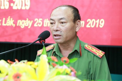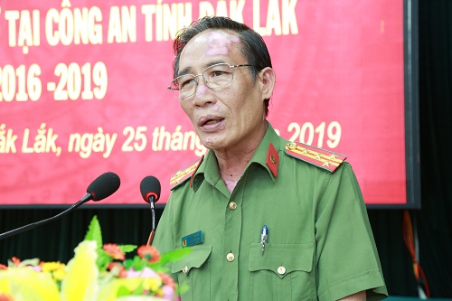 Đ/c Đại tá Y Bé K’Sơr, Phó Giám đốc Công an tỉnh Đắk Lắk phát biểu tại buổi Lễ