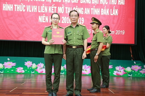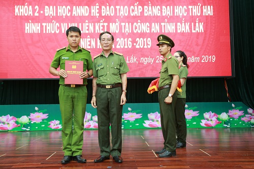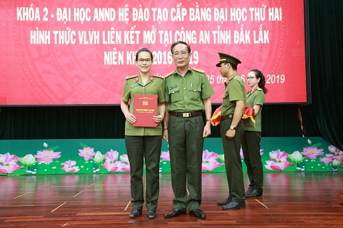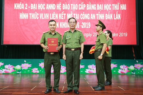 Chiều ngày 25/6, Trường đại học An ninh nhân dân đã tổ chức bế giảng lớp đào tạo cấp bằng đại học thứ 2, niên khóa 2016-2019, mở tại Công an tỉnh Đắk Lắk.