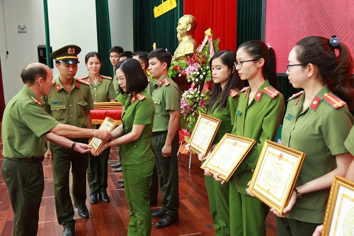 Lãnh đạo Công an tỉnh trao Giấy khen của Giám đốc Công an tỉnh cho các học viên có thành tích xuất sắc
