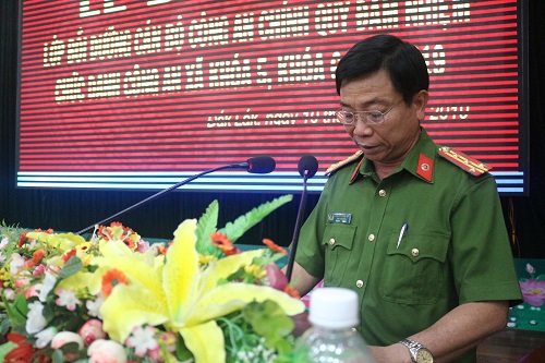 Đ/c Đại tá Nguyễn Văn Hội - Phó Giám đốc Công an tỉnh phát biểu tại Lễ bế giảng