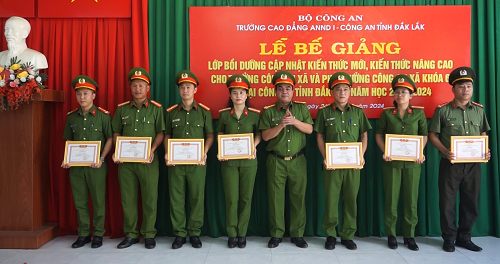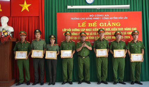 Ngày 26/3/2024, Công an tỉnh Đắk Lắk đã phối hợp với Trường Cao đẳng ANND I tổ chức Lễ bế giảng lớp Bồi dưỡng cập nhật kiến thức mới, kiến thức nâng cao cho Trưởng Công an xã và Phó Trưởng Công an xã thuộc Công an tỉnh Đắk Lắk năm 2024.