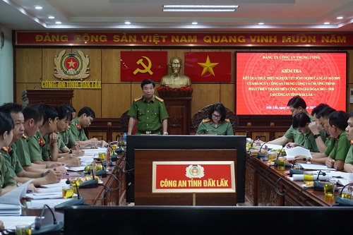 Sáng ngày 21/10/2020, Đoàn công tác của Bộ Công an do đồng chí Đại tá Ngô Hoài Thu - Phó Cục trưởng Cục Công tác Đảng và Công tác chính trị làm trưởng đoàn đã kiểm tra kết quả thực hiện Nghị quyết số 07-NQ/ĐUCA ngày 16/3/2009 của Đảng ủy Công an Trung ương về “Tăng cường sự lãnh đạo của Đảng đối với công tác thanh niên trong thời kỳ đẩy mạnh công nghiệp hóa, hiện đại hóa” và Chương trình phát triển thanh niên Công an, giai đoạn 2013 - 2020 tại Công an tỉnh Đắk Lắk. Tham gia đoàn công tác còn có đồng chí Trung tá Đồng Đức Vũ - Ủy viên Ban Thường vụ Trung ương Đoàn, Bí thư Đoàn Thanh niên Bộ Công an cùng các các đồng chí trong Ban Chấp hành Đoàn Thanh niên Bộ Công an. Về phía Công an tỉnh có đồng chí Đại tá Nguyễn Văn Hội, Ủy viên Ban Thường vụ Đảng ủy, Phó Giám đốc Công an tỉnh cùng các đồng chí lãnh đạo các đơn vị thuộc công an tỉnh, các đồng chí trong Ban Chấp hành Đoàn Thanh niên Công an tỉnh.