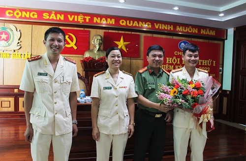 Đ/c Hoàng Thành Trung – Bí thư Đảng ủy Phòng Tham tặng hoa chúc mừng chi ủy chi bộ khóa mới, nhiệm kỳ 2020 - 2022
