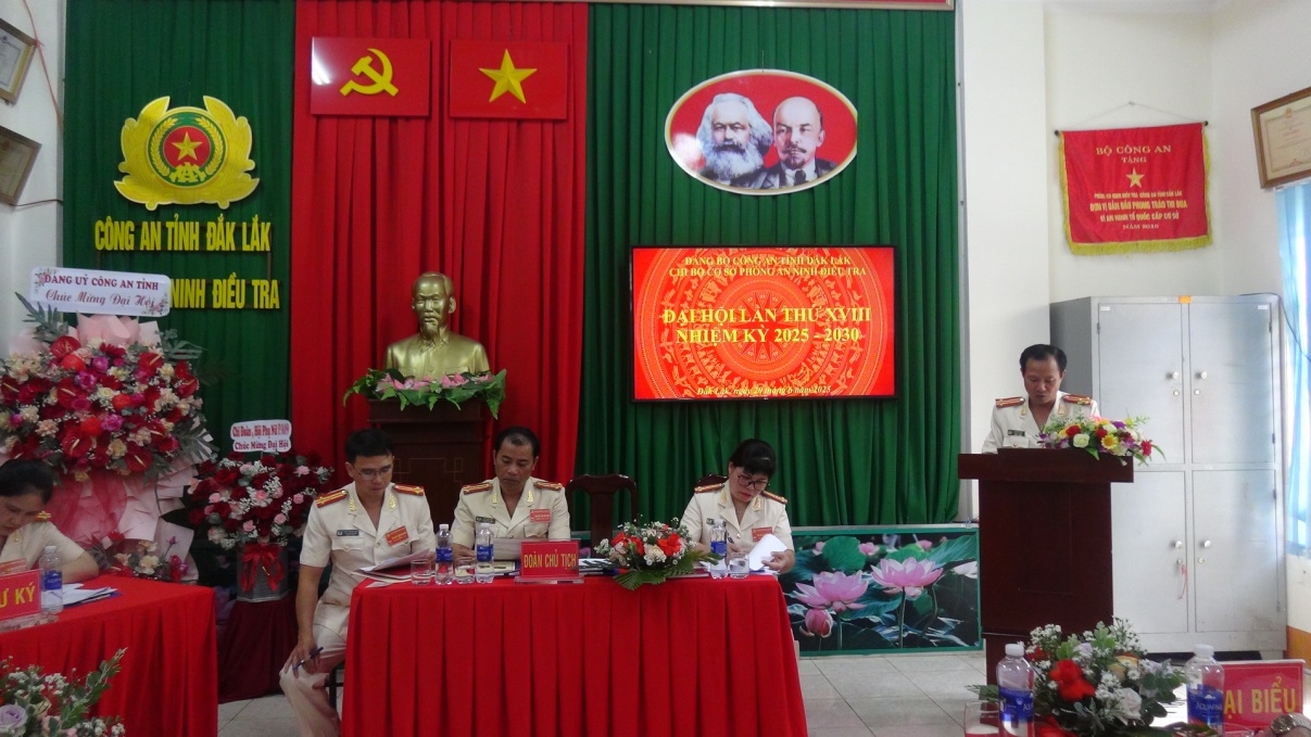 Tại Hội nghị, sau phần khai mạc, báo cáo tình hình đảng viên tham dự đại hội, các đại biểu đã được nghe toàn văn dự thảo Báo cáo chính trị do Ban Chấp hành Chi bộ khóa XVII chuẩn bị và dự thảo Báo cáo kiểm điểm của Ban Chấp hành Chi bộ, nhiệm kỳ 2020 – 2025. Theo đó, 05 năm qua (2020 – 2025), được sự quan tâm thường xuyên, chặt chẽ của Ban Thường vụ Đảng ủy, lãnh đạo Công an tỉnh, sự phối hợp chặt chẽ, đồng bộ của các tổ chức cơ sở đảng, các đơn vị nghiệp vụ, với tinh thần nỗ lực, đoàn kết, thống nhất, quyết tâm cao, ngay từ đầu nhiệm kỳ, Chi bộ đã quán triệt, triển khai thực hiện nghiêm túc Đại hội Đảng bộ Công an tỉnh lần thứ XIII, tập trung lãnh đạo thực hiện thắng lợi nhiệm vụ chính trị, góp phần tích cực đảm bảo ổn định tình hình an ninh, trật tự tại địa phương; chú trọng làm tốt công tác xây dựng Đảng thực sự “trong sạch, vững mạnh”, xây dựng lực lượng ngày càng chính quy, tinh nhuệ và từng bước hiện đại. Về cơ bản đã hoàn thành tốt các mục tiêu, nhiệm vụ mà Nghị quyết Đại hội nhiệm kỳ 2020 – 2025 đã đề ra.