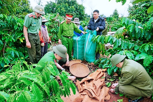 Công an xã Ea Kênh tuần tra bảo vệ mùa thu hoạch cà phê cho Nhân dân