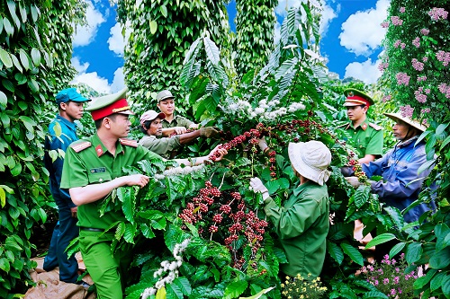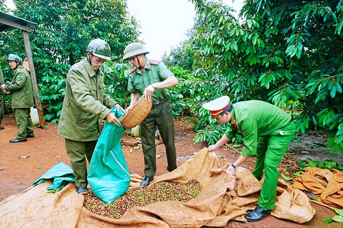 Công an xã Ea Kênh giúp dân thu hoạch cà phê