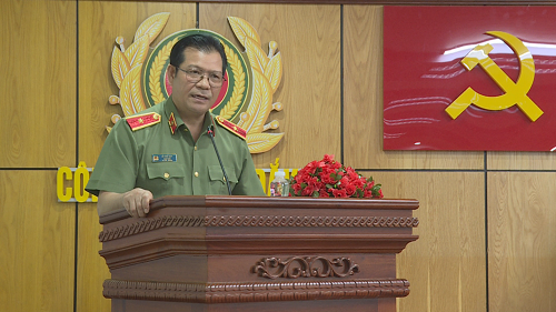 Thiếu tướng Lê Vinh Quy – Giám đốc Công an tỉnh phát biểu chỉ đạo Hội nghị.