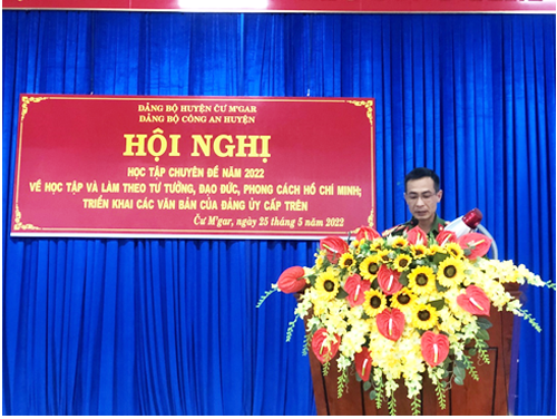 Ngày 25/5/2022, Đảng ủy Công an huyện Cư M’gar tổ chức Hội nghị học tập chuyên đề năm 2022; triển khai các văn bản của Đảng ủy cấp trên; tổng kết 05 năm thực hiện Chỉ thị số 13-CT/TW của Ban Bí thư đến cấp ủy các Chi bộ trực thuộc và Chi bộ Công an các xã, thị trấn. Đồng chí Thượng tá Trần Bình Hưng, Ủy viên Ban Thường vụ Huyện ủy, Bí thư Đảng ủy, Trưởng Công an huyện chủ trì Hội nghị.