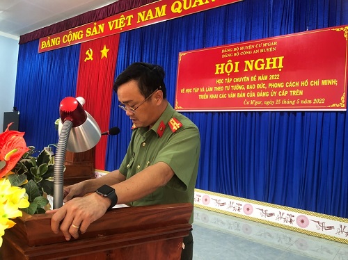 Phát biểu kết luận Hội nghị, đồng chí Thượng tá Trần Bình Hưng - Bí thư Đảng ủy, Trưởng Công an huyện đã biểu dương những kết quả đạt được, đồng thời cũng nhấn mạnh những tồn tại, hạn chế, thiếu sót để các Chi bộ nghiêm túc rút kinh nghiệm, khắc phục hạn chế, phát huy những kết quả đạt được trong học tập và làm theo tư tưởng, đạo đức và phong cách Hồ Chí Minh, từ đó thực hiện thắng lợi nhiệm vụ chung toàn đơn vị.