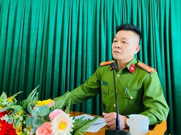 Đồng chí Thượng tá Nguyễn Công Hoà - Bí thư Đảng uỷ, Trưởng Công an huyện phổ biến Nghị quyết số 12-NQ/TW