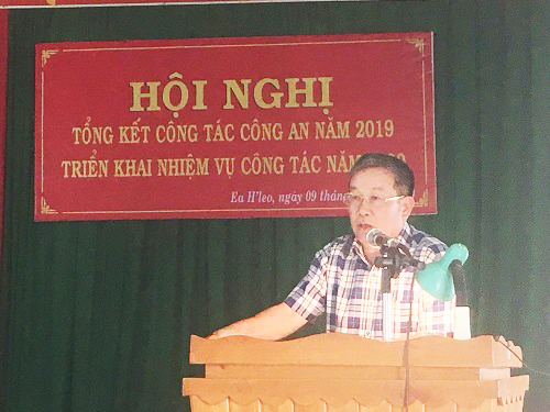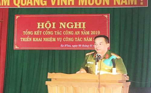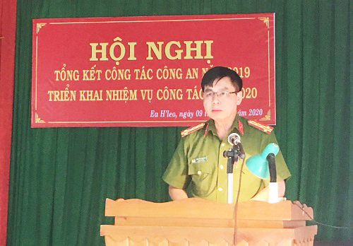 Chiều ngày 09/01/2020, Công an huyện Ea H’leo tổ chức Hội nghị tổng kết công tác Công an năm 2019 và triển khai nhiệm vụ năm 2020. Tham dự và chỉ đạo Hội nghị có đồng chí Đại tá Nguyễn Văn Bình – Phó Giám đốc Công an tỉnh; đồng chí Lê Thăng Long – Phó Bí thư Huyện uỷ, Chủ tịch UBND huyện cùng đại diện lãnh đạo các phòng nghiệp vụ thuộc Công an tỉnh, đại diện Đảng uỷ, UBND 12 xã, thị trấn và toàn thể cán bộ, chiến sỹ Công an huyện Ea H’leo.