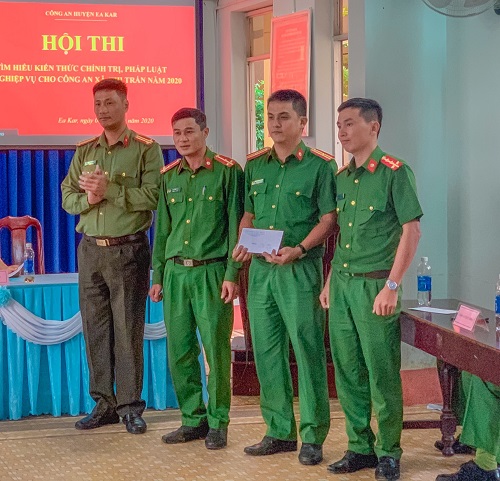 Với sự chuẩn bị kỹ lưỡng, chu đáo về kiến thức, nội dung cùng với tinh thần giao lưu học hỏi; kết thúc Hội thi Ban Tổ chức đã trao 01 giải Nhất chung cuộc cho đội Công an xã Ea Đar; 01 giải Nhì cho đội Công an thị trấn Ea Knốp; 01 giải Ba cho đội Công an xã Cư Bông và 01 giải Khuyến khích cho đội Công an xã Ea Kmút.