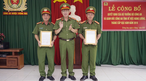 Tại buổi lễ, Công an huyện đã công bố các Quyết định của Bộ trưởng Bộ Công an, Giám đốc Công an tỉnh về việc thăng cấp bậc hàm, nâng lương cho 67 CBCS đến niên hạn trong năm 2019 đang công tác tại Công an huyện Krông Ana.