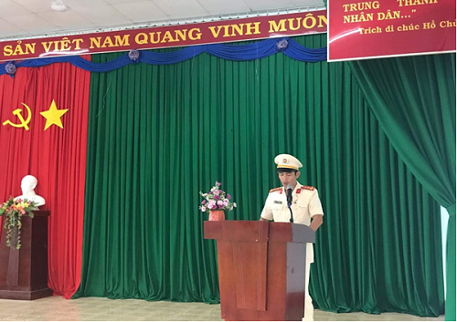 Phát biểu tại buổi Lễ, đồng chí Đại tá Đỗ Văn Xuyền – Ủy viên Ban Thường vụ Huyện ủy, Trưởng Công an huyện cảm ơn cấp ủy, chính quyền huyện đã tạo điều kiện trong việc bố trí sắp xếp công việc phù hợp đối với các đồng chí Công an chính quy đảm nhiệm chức danh Công an xã nhằm thực hiện nghiêm túc chủ trương của Đảng ủy Công an Trung ương, Bộ Công an về tăng cường Công an chính quy về cơ sở và Nghị quyết của Tỉnh ủy Đắk Lắk về xây dựng lực lượng Công an xã chính quy.