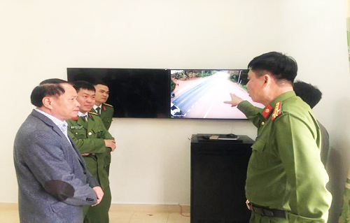 Lãnh đạo Công an tỉnh cùng lãnh đạo UBND huyện chứng kiến ra mắt mô hình Camera an ninh