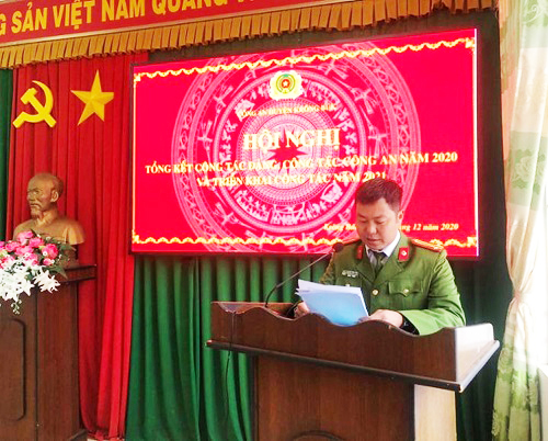 Phát biểu chỉ đạo tại Hội nghị, đồng chí Đại tá Nguyễn Văn Bình, Phó Giám đốc Công an tỉnh và đồng chí Vũ Văn Mỹ - Chủ tịch UBND huyện đã ghi nhận và biểu dương những thành tích đã đạt được của lực lượng Công an huyện năm 2020. Đồng thời, quán triệt, chỉ đạo Công an huyện tập trung thực hiện hiệu quả các mặt công tác trọng tâm đã đề ra trong phương hướng nhiệm vụ công tác năm 2021, trước mắt cần chủ động triển khai các phương án bảo vệ tuyệt đối an ninh, an toàn Đại hội đại biểu toàn quốc lần thứ XIII của Đảng; bầu cử Quốc Hội khóa XV và Hội đồng nhân dân các cấp nhiệm kỳ 2021 - 2026;.... Tiếp tục triển khai các phương án phối hợp phòng, chống thiên tai, dịch bệnh, nhất là dịch covid -19. Chủ động phòng ngừa, đấu tranh có hiệu quả với các loại tội phạm kinh tế, ma túy, môi trường… Kịp thời phát hiện, ngăn chặn thủ đoạn mới của các loại tội phạm, tăng cường công tác quản lý nhà nước về an ninh trật tự, quản lý vũ khí, vật liệu nổ, vận động Nhân dân giao nộp vũ khí, công cụ hỗ trợ và pháo nổ, bảo đảm trật tự, an toàn giao thông, phòng, chống cháy, nổ và cứu nạn, cứu hộ. Triển khai thực hiện quyết liệt, có hiệu quả các đợt cao điểm tấn công trấn áp tội phạm, bảo đảm an ninh, trật tự Tết Nguyên đán Tân Sửu năm 2021. Thường xuyên quan tâm công tác xây dựng Đảng, xây dựng lực lượng trong sạch, vững mạnh, coi đây là nhiệm vụ then chốt có ý nghĩa quyết định thắng lợi nhiệm vụ chính trị được giao.