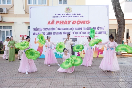 Nhằm tạo sân chơi lành mạnh, bổ ích và phục vụ CBCS trong đơn vị có điều kiện rèn luyện thể lực, nâng cao sức khỏe, và tinh thần. Sáng ngày 17/4/2024, Công an huyện Krông Pắc đã long trọng tổ chức Lễ phát động triển khai cuộc vận động “Toàn dân rèn luyện thân thể theo gương Bác Hồ vĩ đại” năm 2024 và ra mắt các CLB Văn hóa, văn nghệ - Thể dục, thể thao trong Công an huyện. Tới dự buổi lễ có các đồng chí lãnh đạo Huyện ủy, UBND huyện, đại diện Phòng PX03 Công an tỉnh, lãnh đạo Công an huyện và toàn thể cán bộ, chiến sĩ Công an huyện.