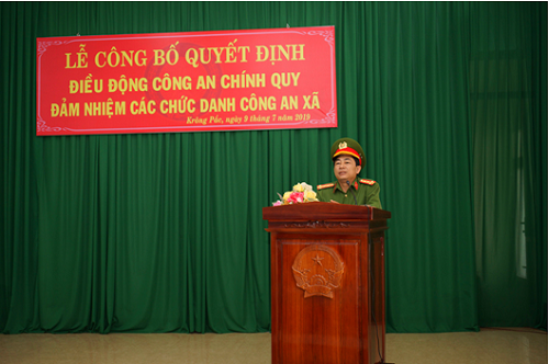 Ngày 09/7/2019, Công an huyện Krông Pắc long trọng tổ chức Lễ công bố quyết định điều động 17 đồng chí Công an chính quy đảm nhiệm các chức danh Công an xã trên địa bàn 04 xã (Ea Knuêc, Ea Kênh, Ea Yiêng và Krông Búk).