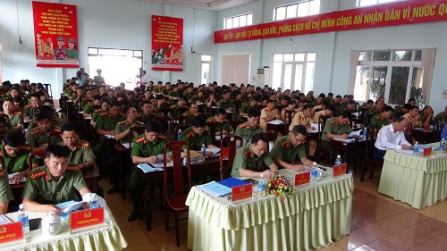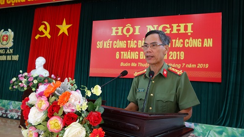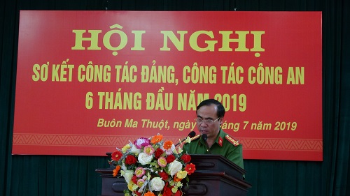 Công an thành phố Buôn Ma Thuột vừa tổ chức Hội nghị đánh giá tình hình, kết quả công tác 6 tháng đầu năm 2019. Đồng chí Đại tá Nguyễn Thế Lực, Phó Giám đốc Công an tỉnh và đồng chí Trương Công Thái - Chủ tịch UBND thành phố dự và chỉ đạo Hội nghị.