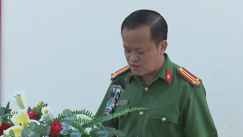 Đồng chí Trung tá Thái Khắc Chính, Phó trưởng Công an thành phố Buôn Ma Thuột báo cáo tại hội nghị