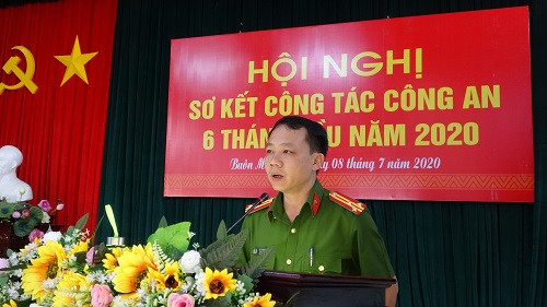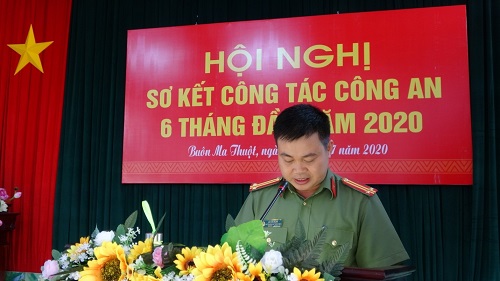 Đồng chí Trung tá Lê Văn Mạnh - Phó trưởng Công an thành phố Buôn Ma Thuột trình bày báo cáo công tác 6 tháng đầu năm 2020